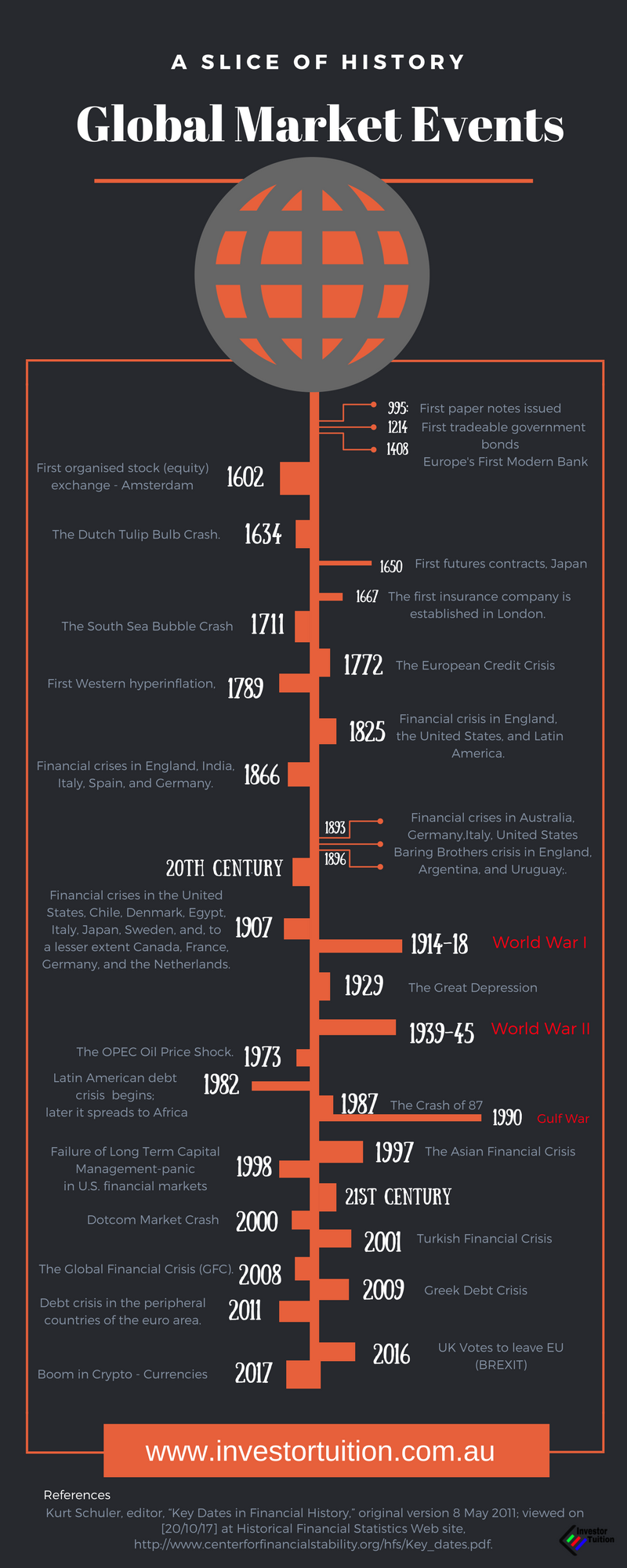 Now I must say this infographic was a bit on the tedious side to create. But it was also totally fascinating. The most profound lesson I learned was the number and regularity of similar major financial events occurring throughout history.