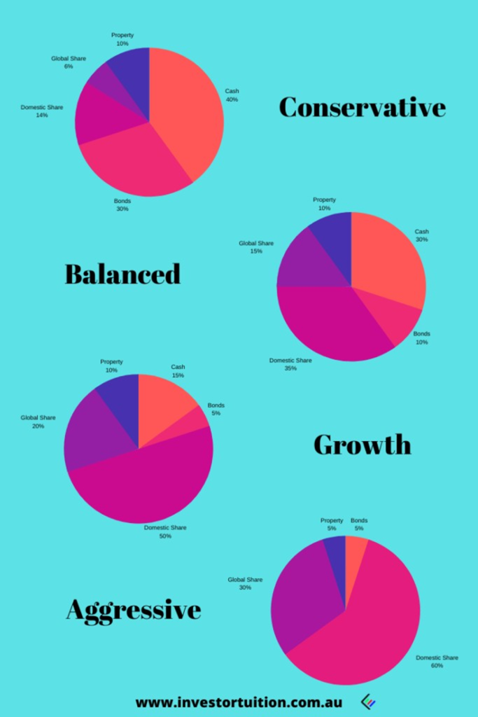 Let’s start by taking a look at those circles filled with different colours appearing on your superannuation statement. Apart from adding a touch of vibrancy to an otherwise dull document, they actually depict how your money is invested. Each colour represents an asset group; the size of the coloured segment being how much of your fund is invested in that particular asset.